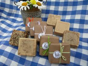 Olive oil, goat milk, coconut oil, water, castor oil, lye, almond oil, shea butter.